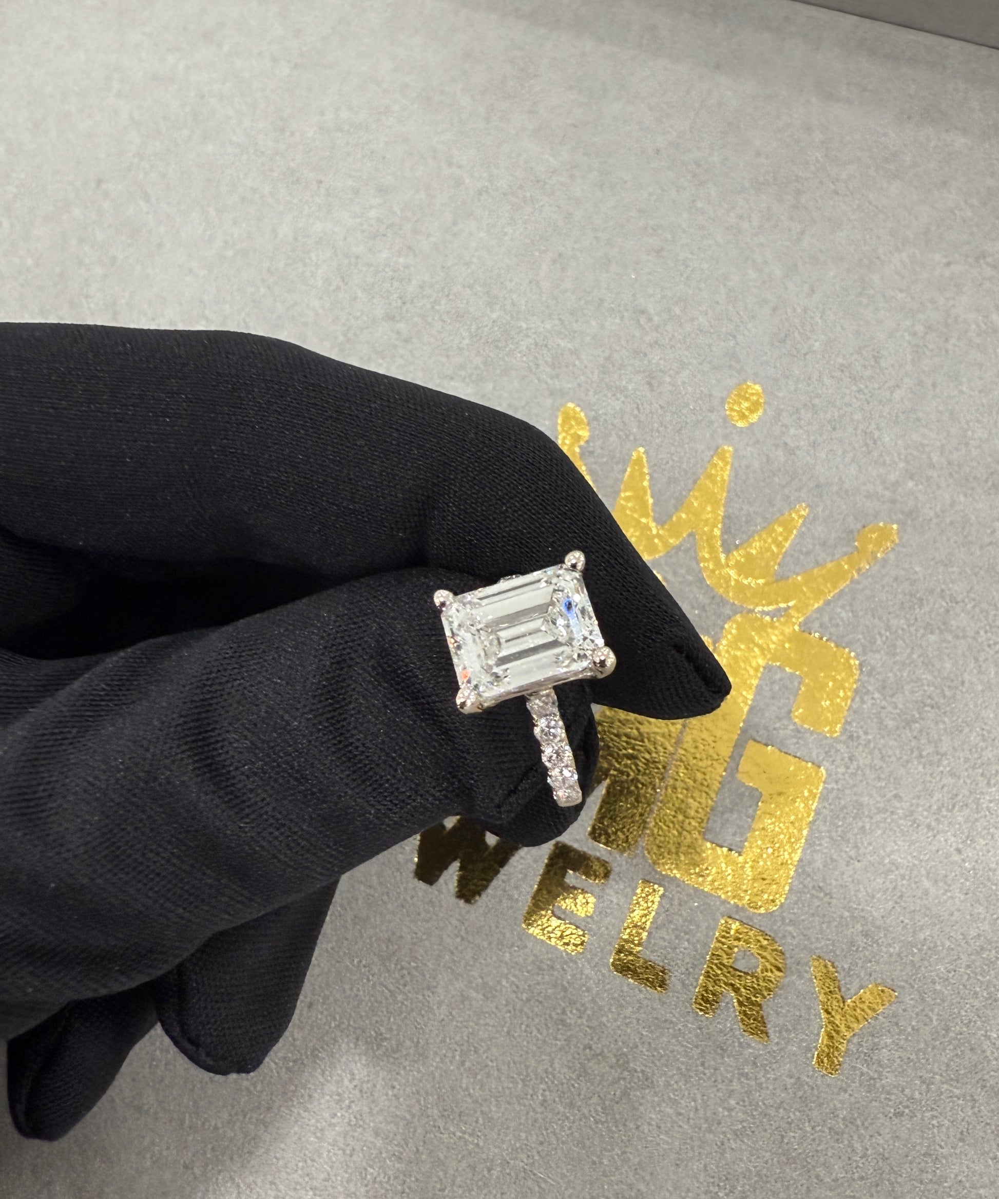 14k white gold emerald cut 4.9ct lab diamond